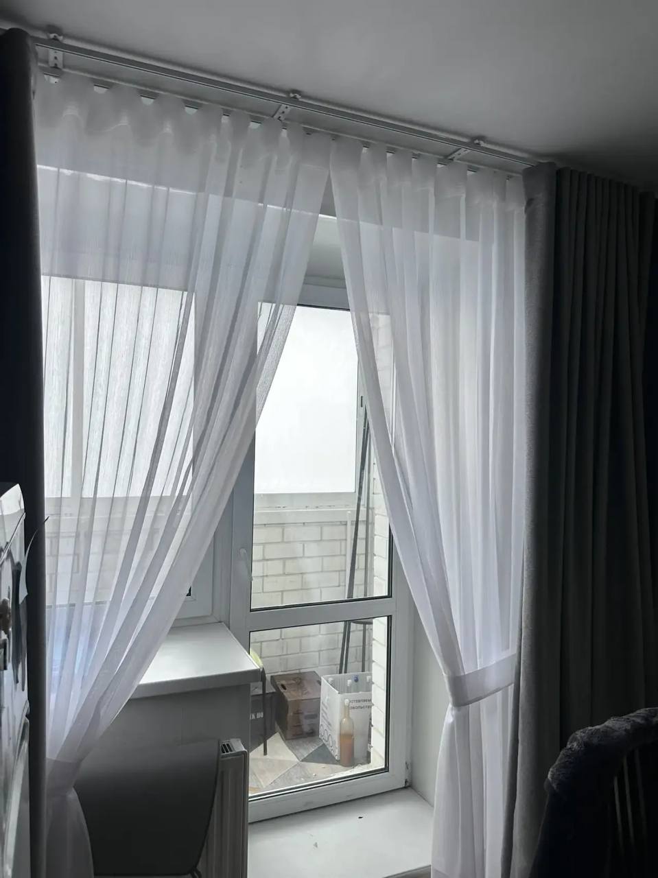 Благодаря независимости карнизов друг от друга, складки на портьерах и тюли не мешают друг другу и шторами можно спокойно пользоваться.