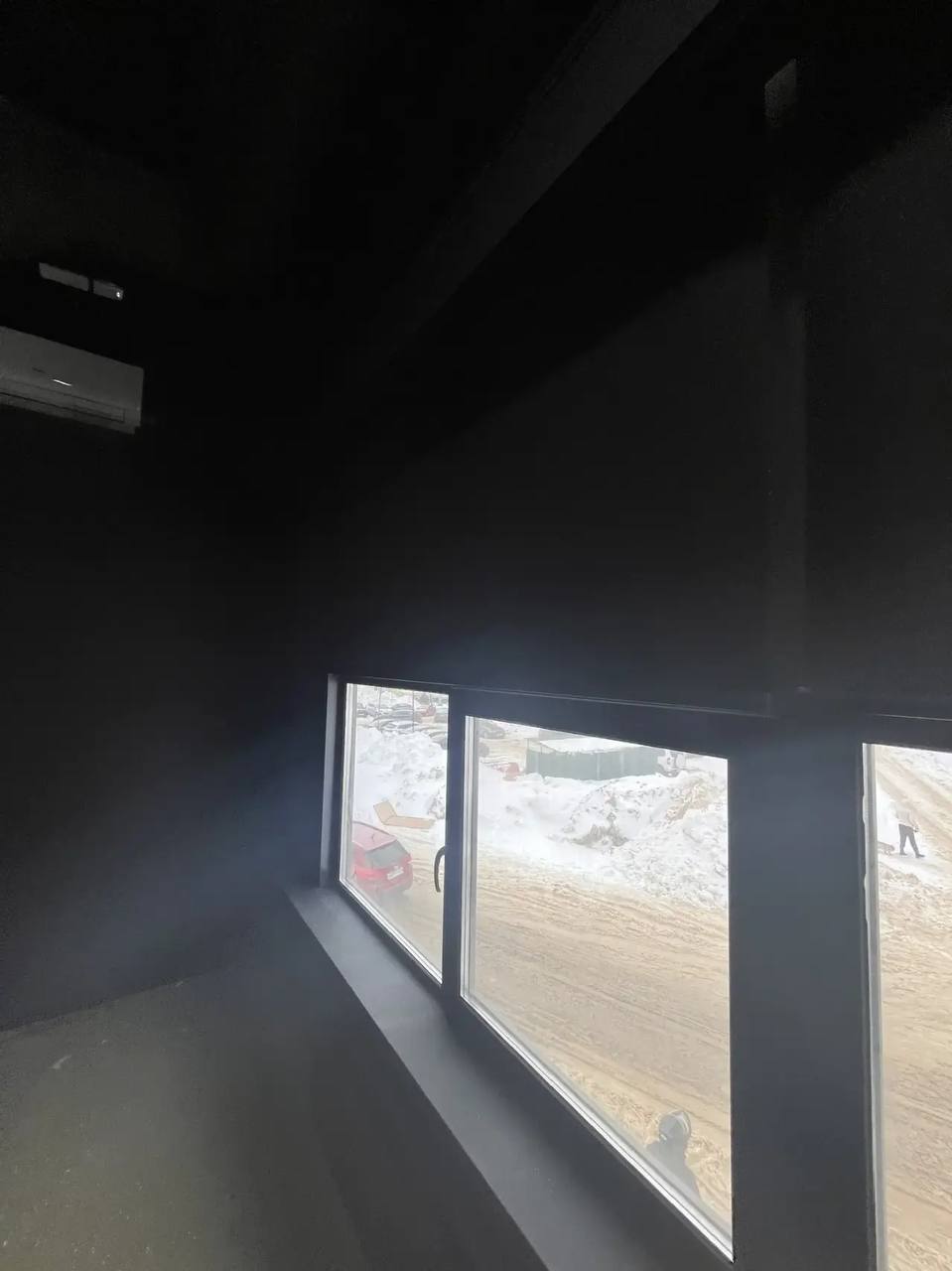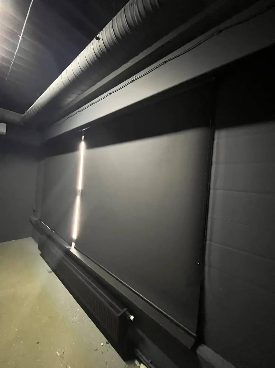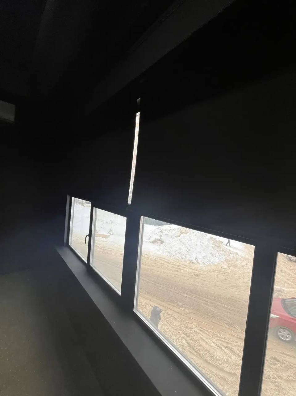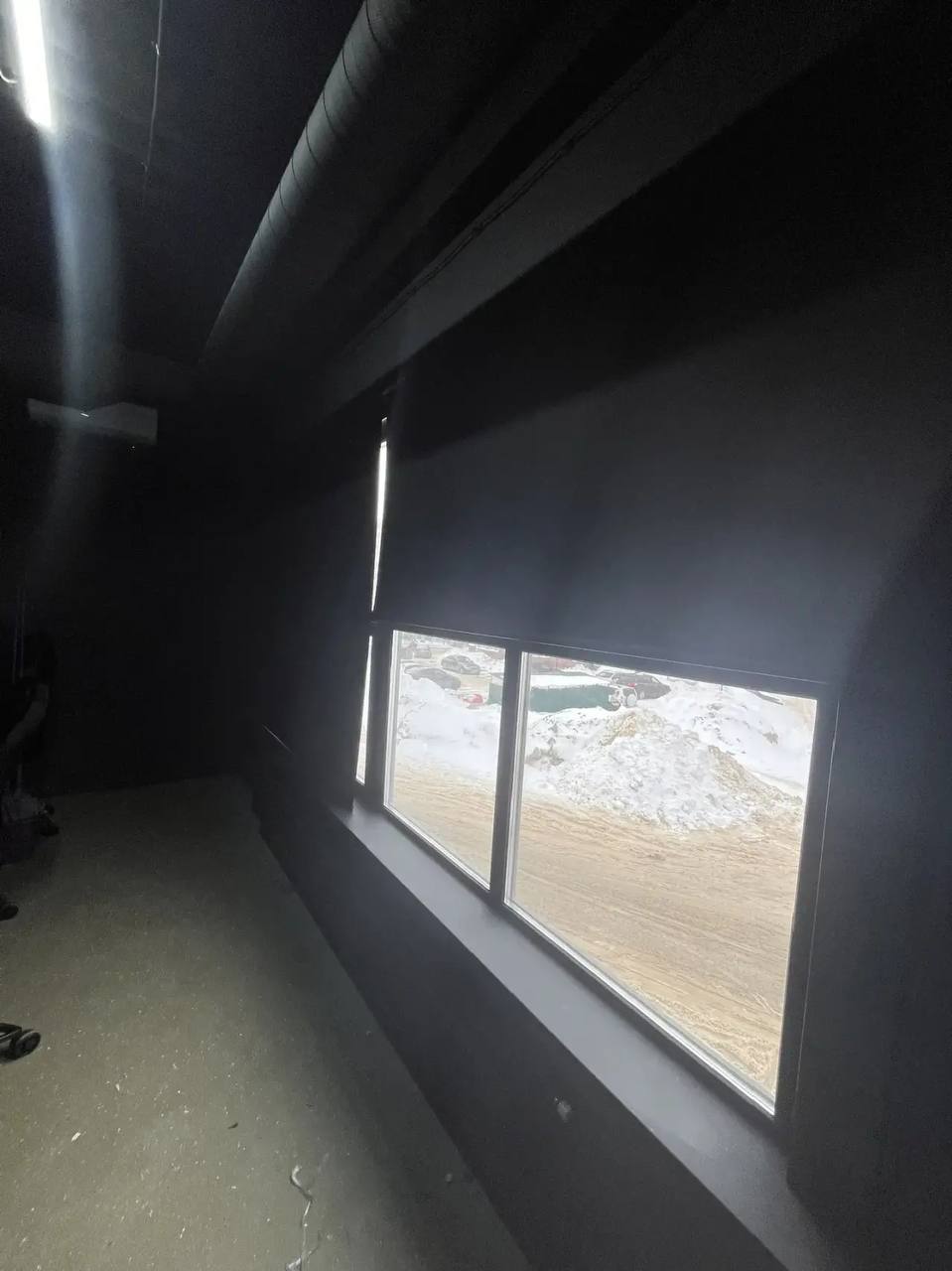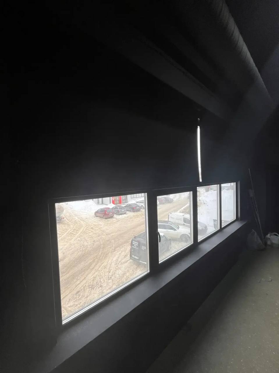 Рулонные шторы черного цвета на проем. Ткань блэкаут.