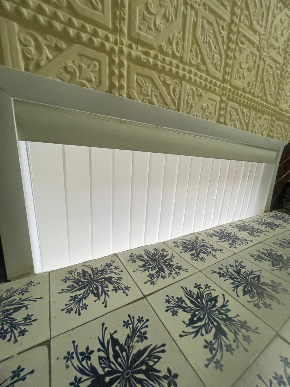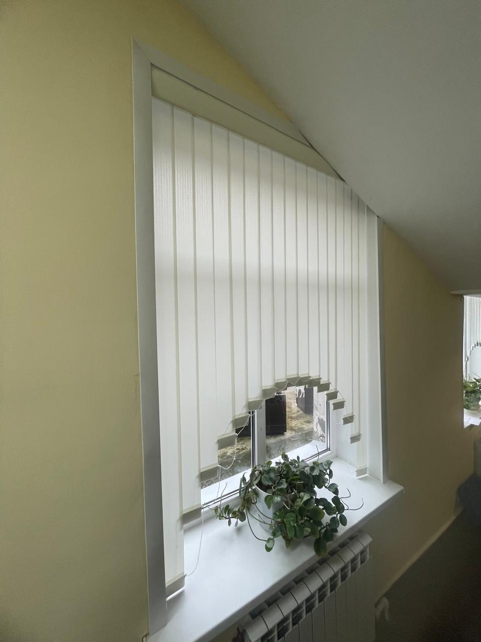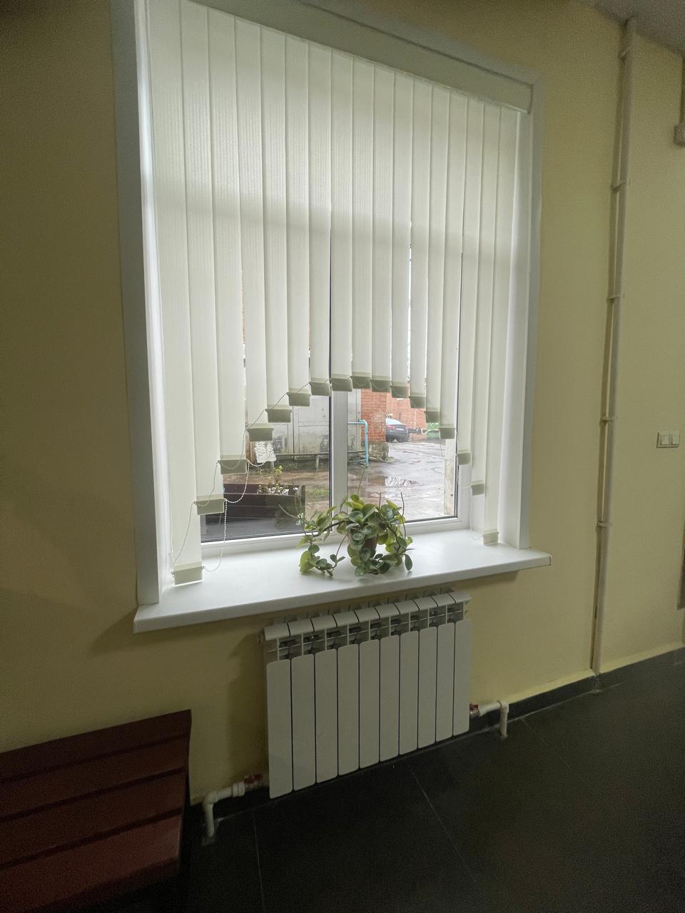 В троллейбусный парк в коридор администрации нужны были вертикальные жалюзи для оформления оконных проемов. Были выбраны вертикальные жалюзи арками из ткани Мальта бежевый.