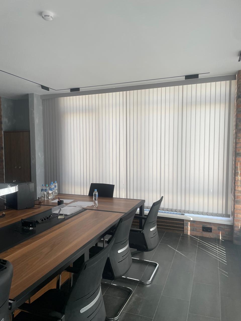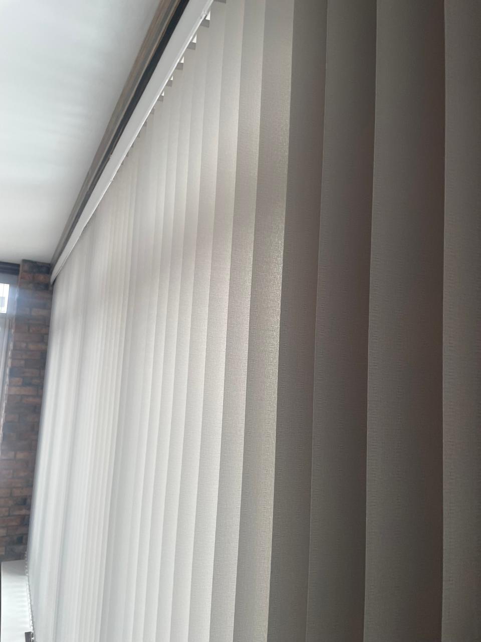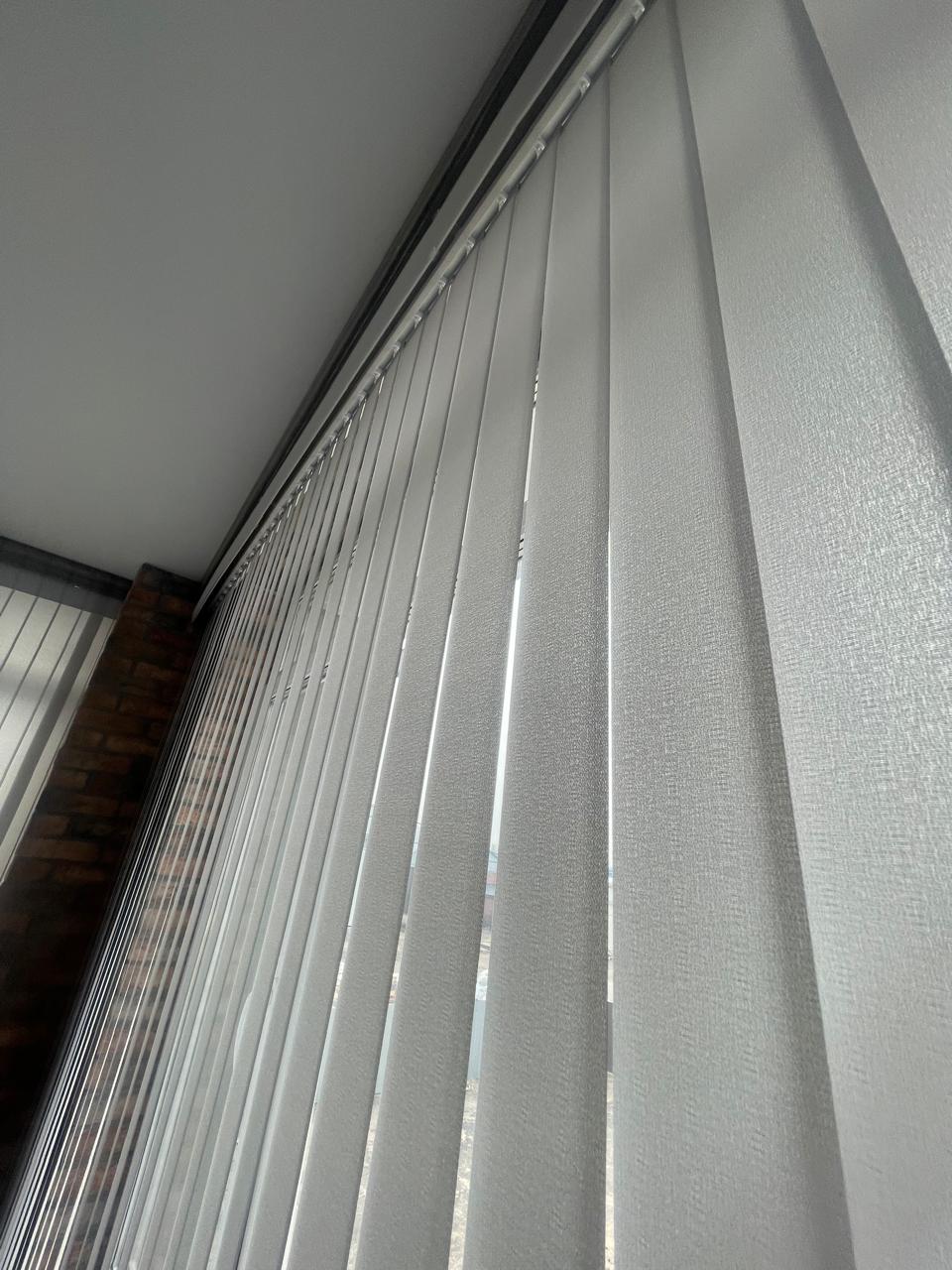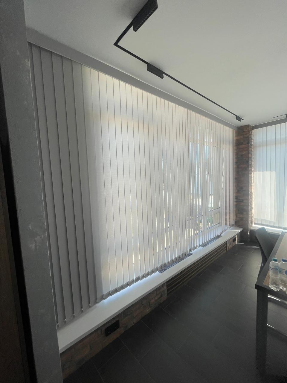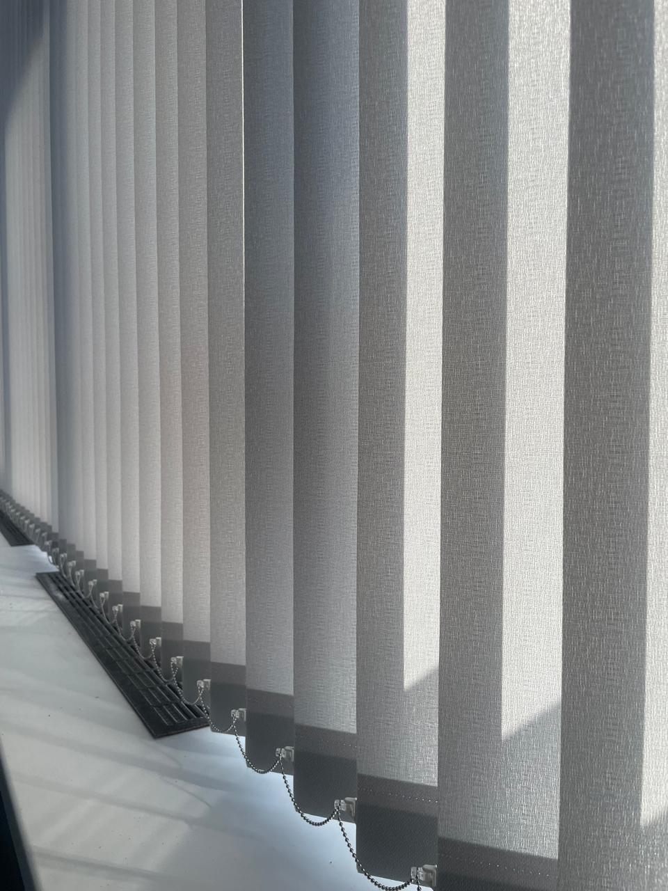 Вертикальные жалюзи с тканью Креп серый с комплектацией люкс