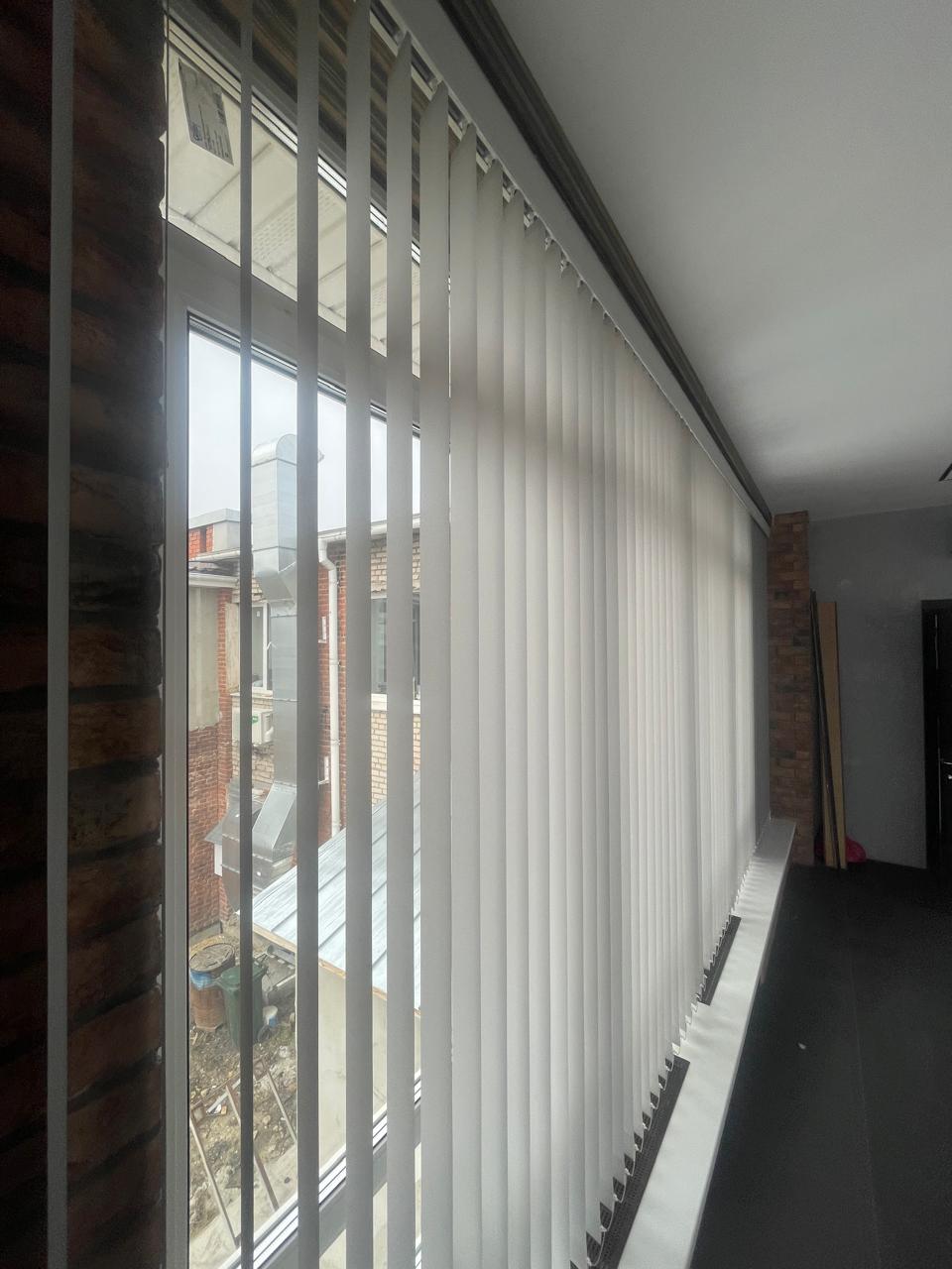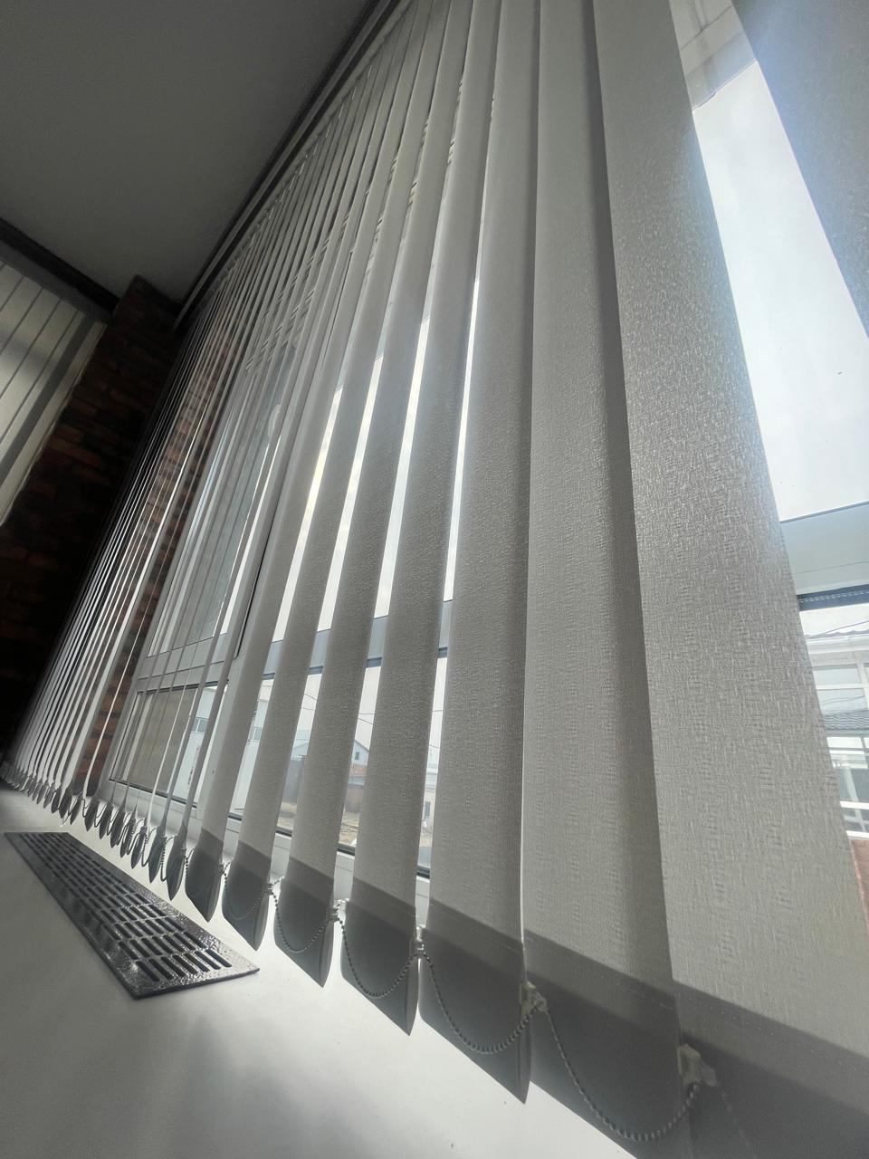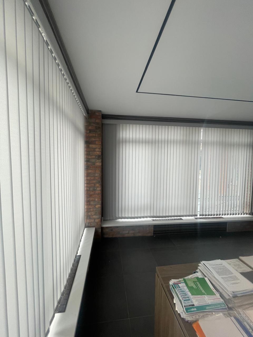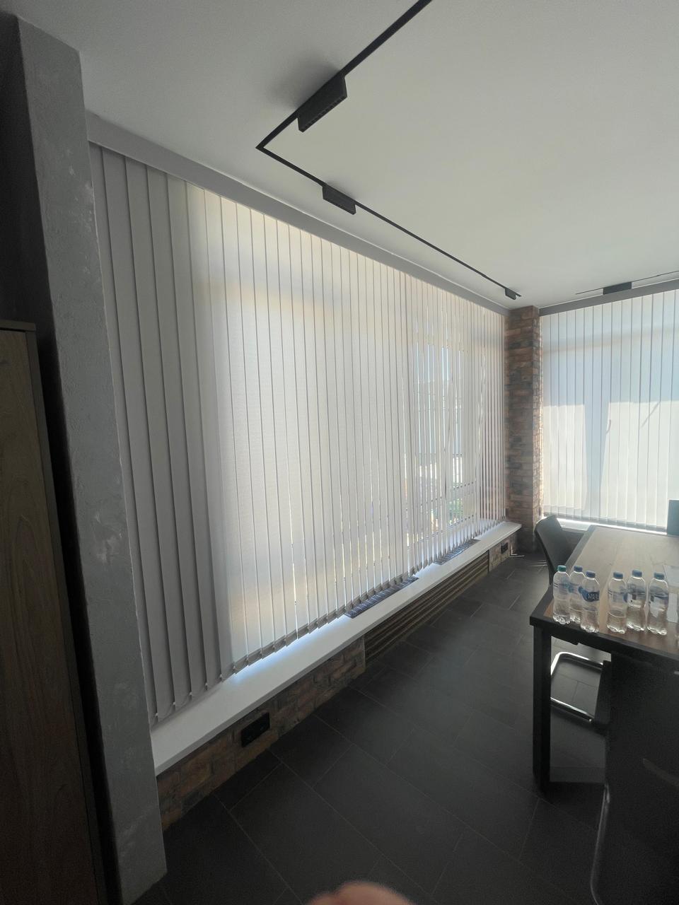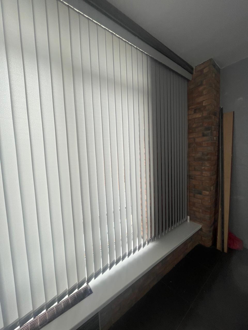 Вертикальные жалюзи с тканью Креп серый с комплектацией люкс