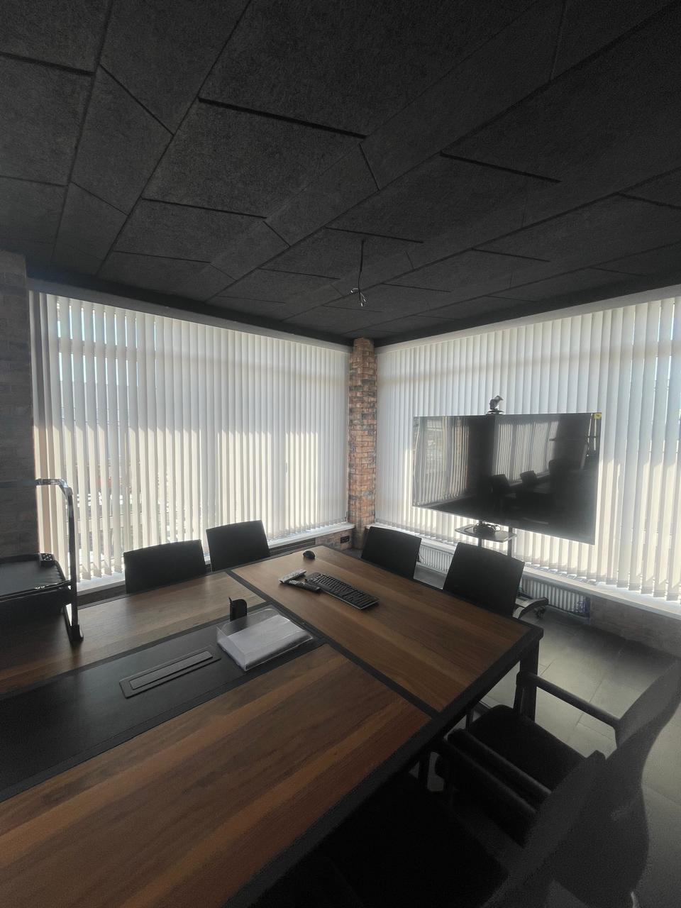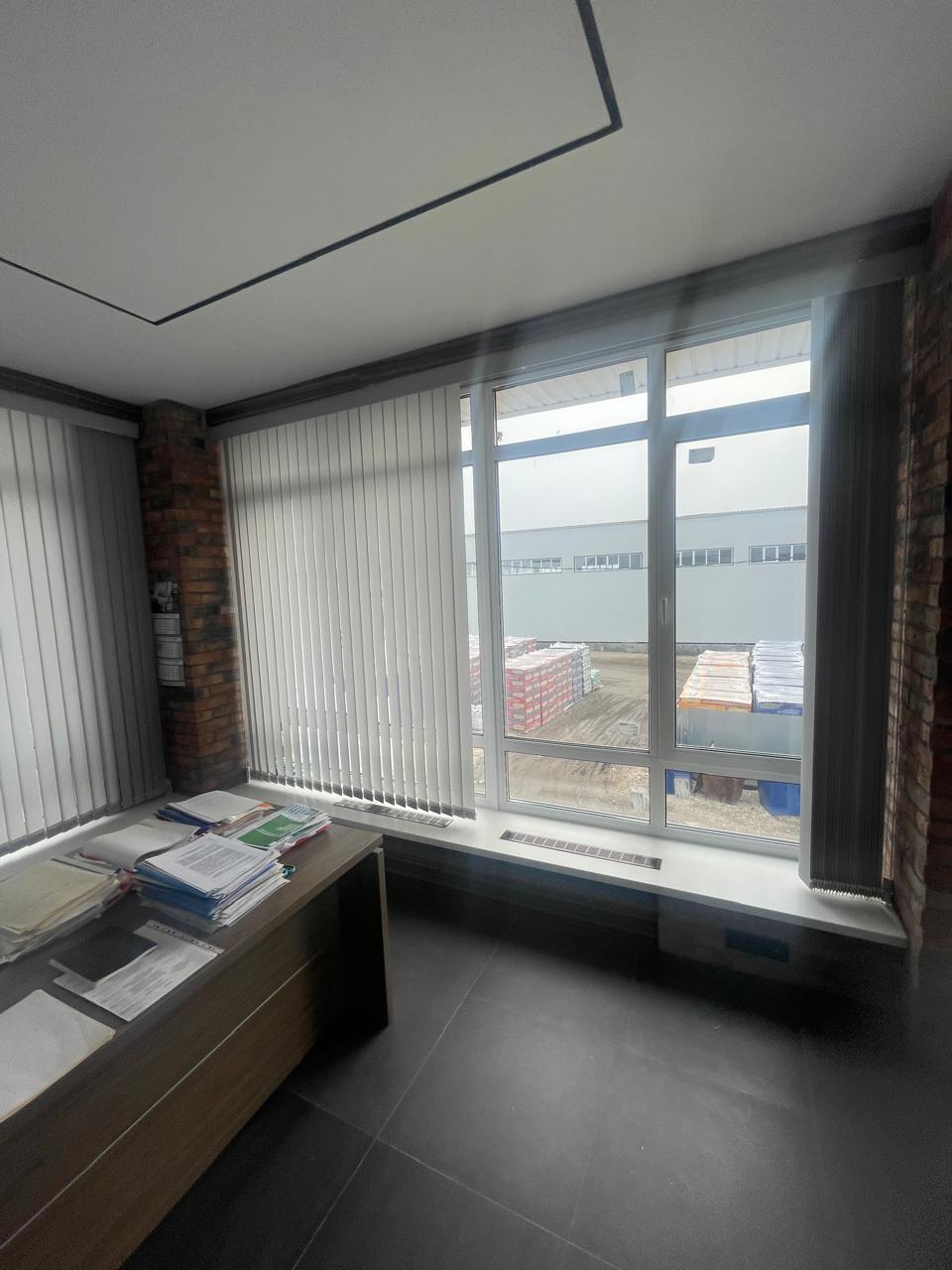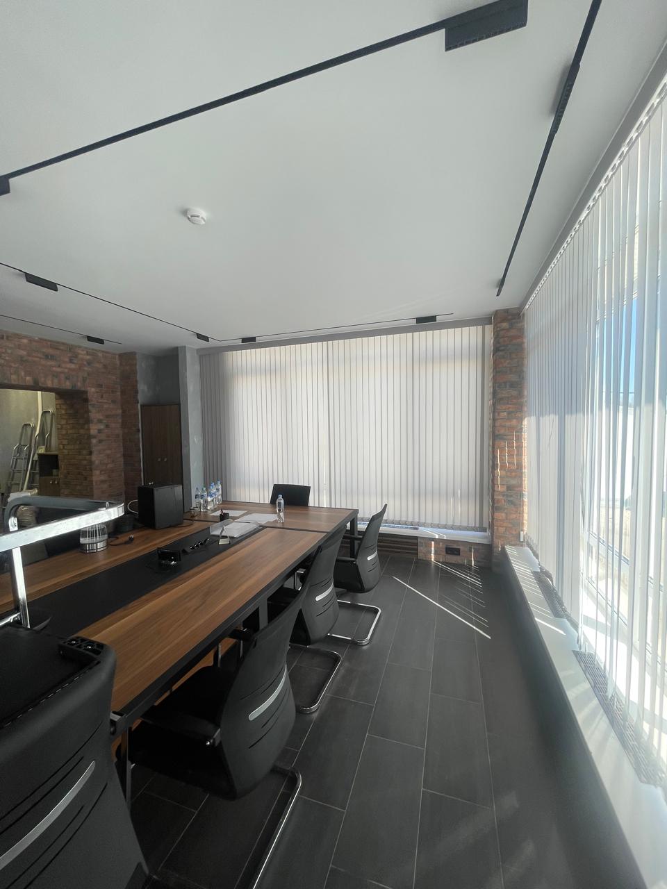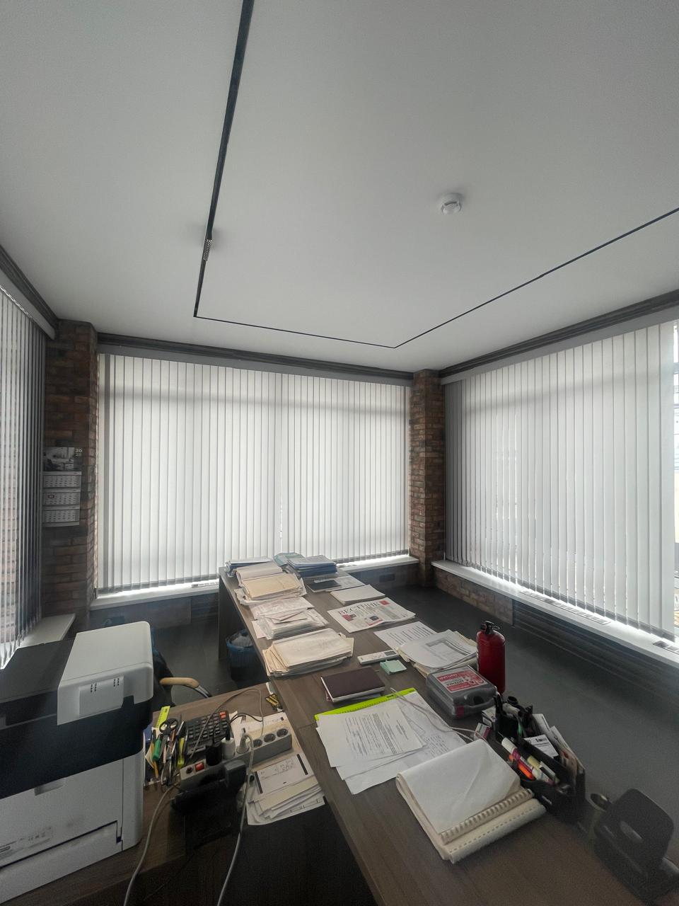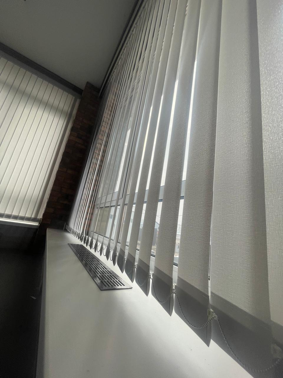 Вертикальные жалюзи с тканью Креп серый с комплектацией люкс